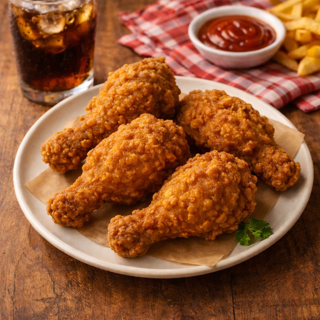3 油溫預熱180度,放入雞腿油炸約8-10分鐘至外皮金黃,即可上桌