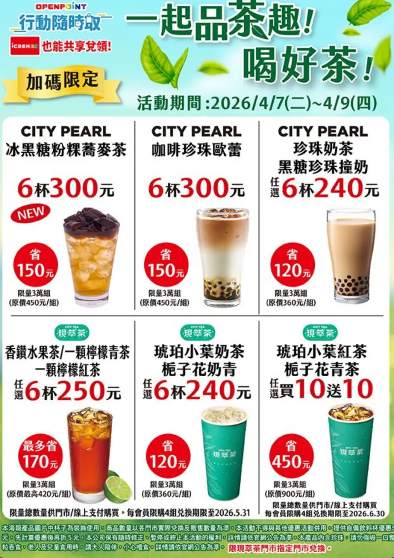 ◾咖啡珍珠歐蕾6杯300元,6.7折(原價75元、特價50元)