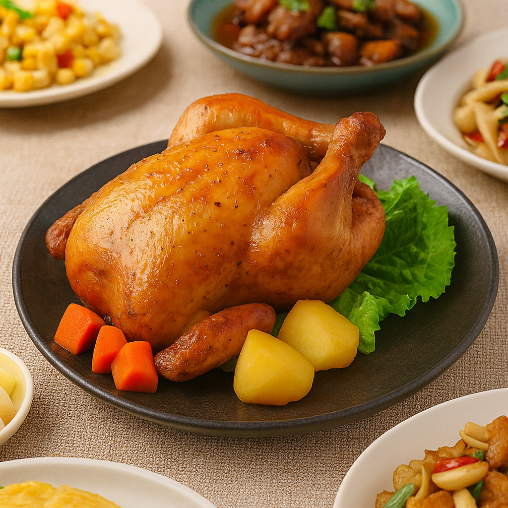 準備材料 1 全雞 一隻 2 甕仔雞醃料粉 120g桂榮提供 3 水 1200g 製作方式 1 將甕仔雞醃料粉跟水依照比例拌勻,將醃漬料均勻塗抹在雞肉後,放置於冷藏醃漬一天入味 2 隔天拿出雞風乾1小時,風乾可讓雞皮酥脆 3 烤箱預熱180度,雞胸朝上,烤75分鐘,小翅的地方可以用鋁箔紙包起來避免燒焦 4 用筷子插進雞腿,沒有血水流出就可以上桌了喔 日本女主播澤口實步說:「烤雞肉不會背叛我,也不會討厭我。」,一起好好品嚐美味的料理吧!