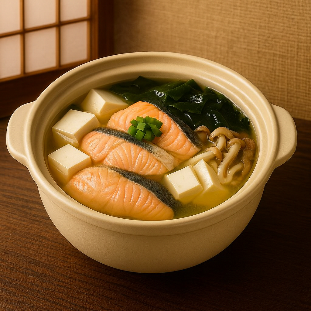 準備材料 1 鮭魚 250G 2 乾燥海帶 一匙 3 洋蔥丁 半顆 4 豆腐 一盒 5 日式和風濃縮湯底 25g桂榮提供 6 鴻喜菇 依照個人喜好準備 7 水 500G 製作方式 1 鮭魚洗淨切小塊,取2大匙米酒略醃去腥味 2 將水及日式和風濃縮湯底混和均勻後放入洋蔥煮滾 3 再依序加入豆腐、海帶以及鮭魚煮開即可上桌 鮭魚的 Omega-3 鮮力,讓和風湯頭更上一味